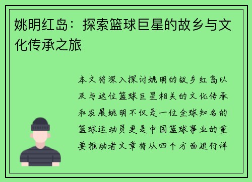 本文将探讨姚明的口音魅力及其文化影响力,分析其独特的语言特点如何影响公众形象和跨文化交流。文章首先对姚明的口音进行详细剖析,揭示其背后的地域文化与情感表达。接着,讨论姚明口音在全球范围内的传播效果,以及它所承载的中国传统文化元素。随后,我们将探讨姚明作为体育明星,其口音如何影响了他在国际舞台上的沟通和互动。最后,从社会心理角度分析姚明的口音对人们认知和接受度的影响。这一系列分析不仅揭示了姚明口音本...